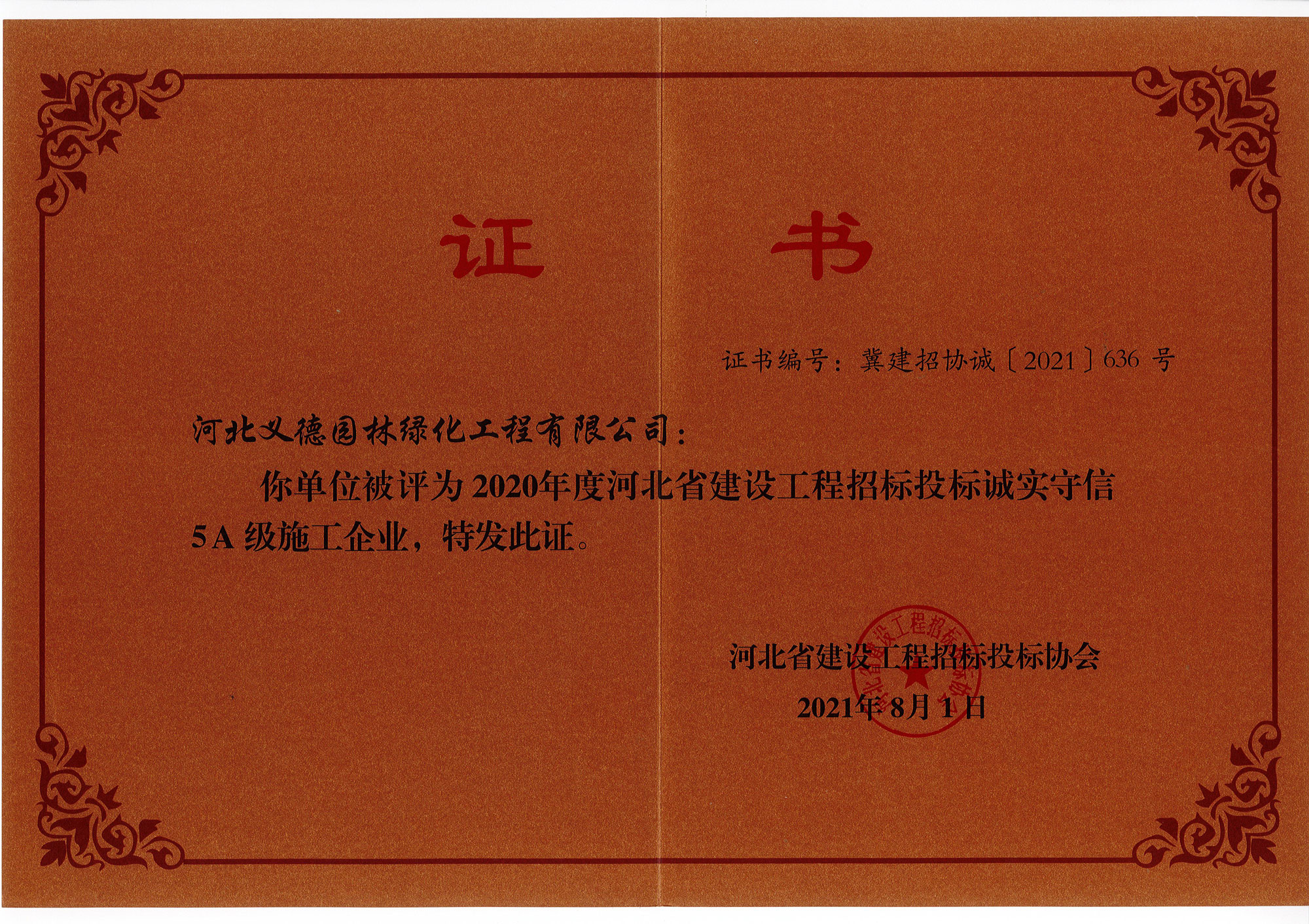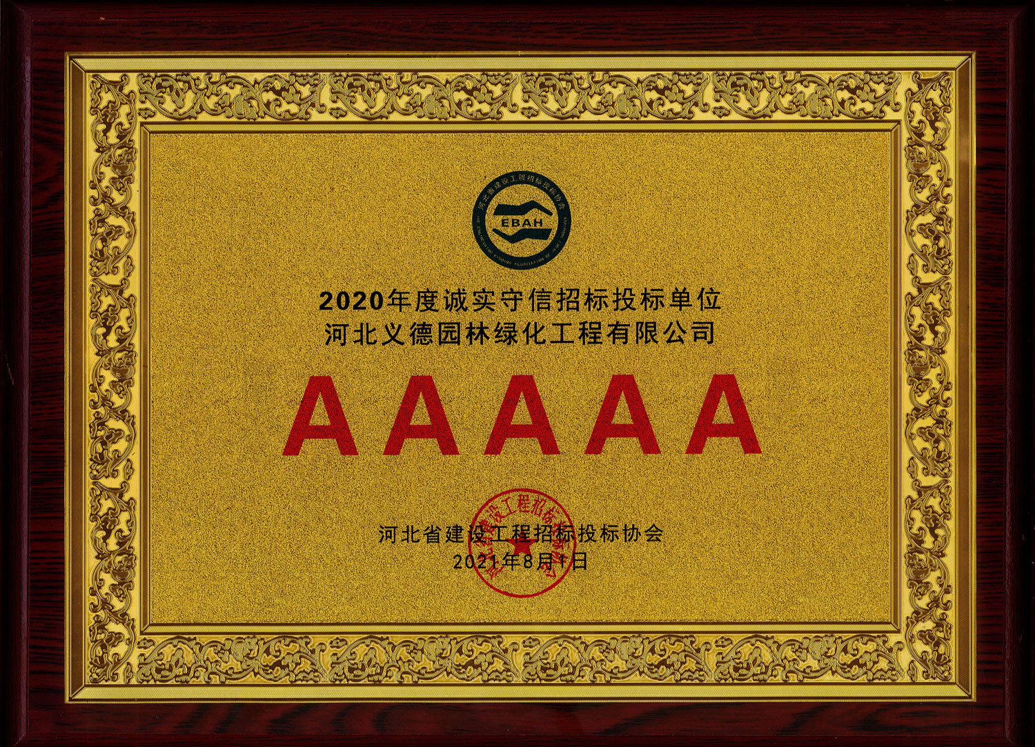 近幾年來我公司被授予2019年-2022年河北省扶貧龍頭企業(yè)、2018年國家林業(yè)標(biāo)準(zhǔn)化示范企業(yè)、2019年度全國苗圃50強(qiáng)、2018-2019年度河北省林業(yè)重點(diǎn)龍頭企業(yè)、2018年保定市精品特色現(xiàn)代農(nóng)業(yè)園區(qū)、2018年度保定林木種苗協(xié)會(huì)授予特色苗圃、2018年度北方十佳特色苗圃、2016-2019年河北省建設(shè)工程招標(biāo)投標(biāo)誠實(shí)守信5A級(jí)施工企業(yè)等榮譽(yù)稱號(hào),2017年保定市林木種苗龍頭企業(yè)、石家莊市2017年度優(yōu)秀園林企業(yè)。